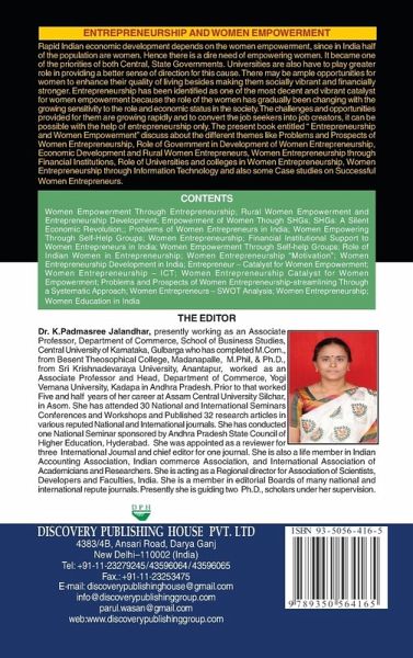 The present book entitled " Entrepreneurship and Women Empowerment" discuss about the different themes like Problems and Prospects of Women Entrepreneurship, Role of Government in Development of Women Entrepreneurship, Economic Development and Rural Women Entrepreneurs, Women Entrepreneurship through Financial Institutions, Role of Universities and colleges in Women Entrepreneurship, Women Entrepreneurship through Information Technology and also some Case studies on Successful Women Entrepreneurs.