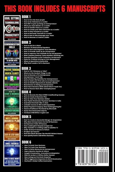 Do you want to master your emotions using positive thinking? Do you want to become Self-Confident? Do you want to learn how to deal with Depression and Social Anxiety? If your answer is yes, this book is for you! THIS BOOK CONTAINS 6 MANUSCRIPTS! BOOK 1 GOAL SETTING & POSITIVE LEADERSHIP IN THE WORKPLACE TEAMBUILDING, PRODUCTIVITY AND TIME MANAGEMENT IN BUSINESS BOOK 2 PROBLEM SOLVING, BODY LANGUAGE AND COMMUNICATION SKILLS HOW TO TALK & LISTEN TO ANYONE WITH CONFIDENCE AND FOCUS BOOK 3 MASTER YOUR EMOTIONS USING POSITIVE THINKING AND MENTAL CLARITY SELF-CONFIDENCE, ASSERTIVENESS, SOCIAL ANXIETY & MORNING ROUTINE BOOK 4: HOW TO START A BUSINESS: SMALL BUSINESS TO GLOBAL SUCCESS HOW TO CREATE A SUCCESSFUL MERGER OR ACQUISITION USING CROWDFUNDING BOOK 5: HOW TO WRITE A WINNING BUSINESS PLAN STEP-BY-STEP GUIDE FOR STARTUP ENTREPRENEURS TO ATTRACT INVESTORS AND ACHIEVE SUCCESS WITH A BULLETPROOF BUSINESS PLAN BOOK 6: HOW TO SCALE SMALL BUSINESS TO INTERNATIONAL SUCCESS HOW TO RAISE MONEY, GET INVESTORS ONBOARD, TAKE YOUR BUSINESS GLOBAL BUY THIS BOOK NOW AND GET STARTED TODAY!