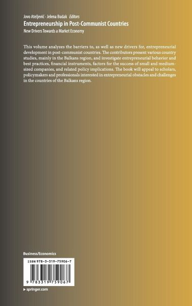 Chapter 1: Introduction to "Entrepreneurship in Post-Communist Countries: New Drivers towards a Market Economy".- Part 1: Entrepreneurship in Post-Transition Context.- Chapter 2: The influence of the motives of entrepreneurial activity on economic growth of developing countries in Southeast Europe.- Chapter 3:Financial instruments for boosting entrepreneurship in selected post-communist EU countries.- Chapter 4: FDI Flows and Regional Development: Lesons for transition countries.- Chapter 5: Sources of financing in the process of enterprise restructuring, focusing on transition economies.- Chapter 6: Dominant Motives of Entrepreneurial Behaviour in Transitional Countries.- Chapter 7: The Distinctiveness of Female Entrepreneurship in Post-Transition Countries: The Case of Central Europe and the Baltic States.- Chapter 8: The local economic impact of universities: An international comparative analysis (France and Hungary).- Part 2: Small and Medium-Sized Entrepreneurship In The Balkans Region.- Chapter 9: The influence of the tangible and intangible assets on the SMEs success: the Albanian case.- Chapter 10: The role of networking in the company's growth process.- Chapter 11: The effect of EU membership on public procurement for SMEs in post-transition countries.- Chapter 12: The effect of market liquidity on the company value.- Chapter 13: Assessing entrepreneurial intentions: Motivations and barriers amongst WBC students through developing a network of co-creative centers - iDEA labs.- Chapter 14: Ethical behaviour in the context of managerial decision making and satisfaction of employees: lessons from the experience of the post-transition country.