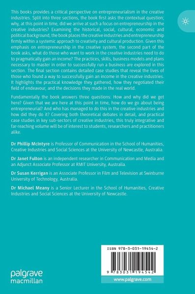 This books provides a critical perspective on entrepreneurialism in the creative industries. Split into three sections, the book first asks the contextual question; why, at this point in time, did we arrive at such a focus on entrepreneurship in the creative industries? Examining the historical, social, cultural, economic and political background, the book places the creative industries and entrepreneurship firmly within a systemic approach to creativity and cultural production. Given this emphasis on entrepreneurship in the creative system, the second part of the book asks, what do those who want to work in the creative industries need to do to pragmatically gain an income? The practices, skills, business models and plans necessary to master in order to successfully run a business are explored in this section. The final section contains detailed case studies that reveal the lives of those who found a way to successfully gain an income in the creative industries. It highlights the practical knowledge they gathered, how they negotiated their field of endeavour, and the decisions they made in the real world.