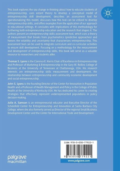This book explores the sea change in thinking about how to educate students of entrepreneurship, uses extant theory to develop a conceptual model of entrepreneurship skill development, describes an assessment tool for operationalizing this model, discusses how this tool can be utilized to develop entrepreneurship skills, and offers examples from the application of our approach in educational settings. It concludes with implications of this methodology for furthering both entrepreneurship education and the research that shapes it. The authors present an entrepreneurship skills assessment tool, which uses a theory of measurement that breaks from psychometrics (predictive approaches) and honors the volatility and uncertainty that characterizes entrepreneurship. This assessment tool can be used to integrate curriculum and co-curricular activities to ensure skill development. Focusing on a methodology for the measurement and development of entrepreneurship skills, this book will serveas a valuable resource to researchers and students alike.