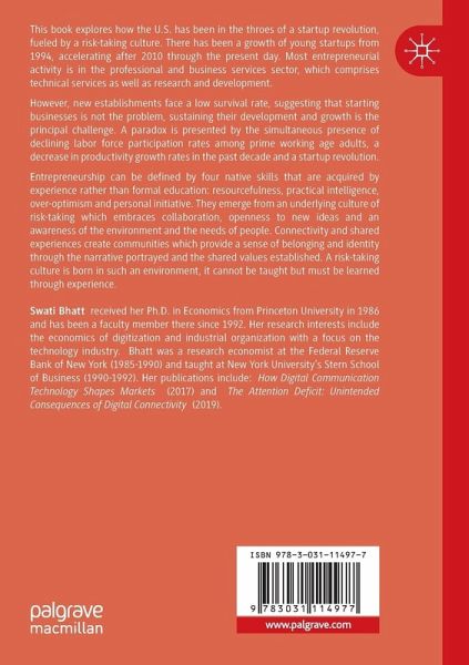 This book explores how the U.S. has been in the throes of a startup revolution, fueled by a risk-taking culture. There has been a growth of young startup from 1994, accelerating after 2010 through the present day. Most entrepreneurial activity is in the professional and business services sector, which comprises technical services as well as research and development.