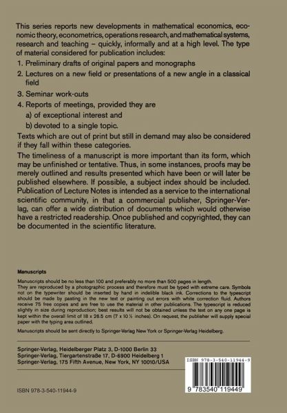 Nachdem in den letzten Jahren das Konzept der stochasti schen Dominanz fur univariate Prospekte breite Anwendung in der Entscheidungsanalyse gefunden hat, scheint es an der Zeit zu sein, dies auch fur multivariate und allge meinere Prospekte zu versuchen. Die vorliegende Monogra phie behandelt die Theorie der stochastischen Dominanz fur univariate und besonders fur multivariate Prospekte sowie fur Prospekte in allgemeineren Raumen. Fur eine groBe Anzahl okonomisch relevanter Nutzenklassen werden die Dominanzrelationen durch Bedingungen an die Wahrschein lichkeitsverteilungen der Prospekte charakterisiert. Der abschlieBende Anwendungsteil enthalt auBer durchgerechne ten Beispielen auch Hinweise auf weitere Anwendungen in der Stochastik und im Operations Research. Die Arbeit ist die leicht erweiterte Fassung eines Manu skripts, das im November 1981 yom Fachbereich Wirtschafts und Organisationswissenschaften der Hocbschule der Bundes wehr Hamburg als Habilitationsschrift angenommen worden ist. Zu danken habe ich vielen und fur vieles: als erster sei Harry Hauptmann genannt, ohne des sen stetige Anregung und fordernde Geduld die Arbeit nicht zustande gekommen ware; Friedrich Schmid verdanke ich haufige und intensive Gesprache; Gunter Bamberg, Martin Beckmann, Harald Scherf und Norbert Schmitz haben wertvolle Diskussionen und Bemer kungen beigesteuert, und Frau Sigrid Jensen-Mundt hat in muhevoller Arbeit das Manuskript geschrieben. Ihnen und allen nicht Genannten und nicht zuletzt dem Verlag gilt mein herzl icher Dank. K. C. M. INHALT EinfUhrung 1.