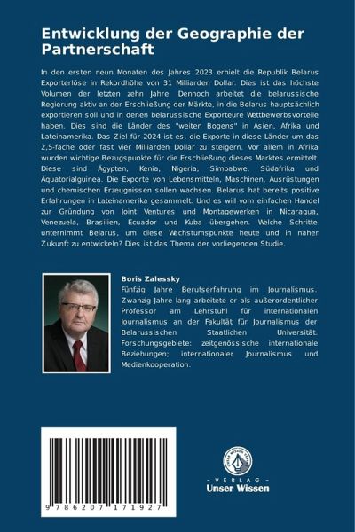 In den ersten neun Monaten des Jahres 2023 erhielt die Republik Belarus Exporterlöse in Rekordhöhe von 31 Milliarden Dollar. Dies ist das höchste Volumen der letzten zehn Jahre. Dennoch arbeitet die belarussische Regierung aktiv an der Erschließung der Märkte, in die Belarus hauptsächlich exportieren soll und in denen belarussische Exporteure Wettbewerbsvorteile haben. Dies sind die Länder des "weiten Bogens" in Asien, Afrika und Lateinamerika. Das Ziel für 2024 ist es, die Exporte in diese Länder um das 2,5-fache oder fast vier Milliarden Dollar zu steigern. Vor allem in Afrika wurden wichtige Bezugspunkte für die Erschließung dieses Marktes ermittelt. Diese sind Ägypten, Kenia, Nigeria, Simbabwe, Südafrika und Äquatorialguinea. Die Exporte von Lebensmitteln, Maschinen, Ausrüstungen und chemischen Erzeugnissen sollen wachsen. Belarus hat bereits positive Erfahrungen in Lateinamerika gesammelt. Und es will vom einfachen Handel zur Gründung von Joint Ventures und Montagewerken in Nicaragua, Venezuela, Brasilien, Ecuador und Kuba übergehen. Welche Schritte unternimmt Belarus, um diese Wachstumspunkte heute und in naher Zukunft zu entwickeln? Dies ist das Thema der vorliegenden Studie.