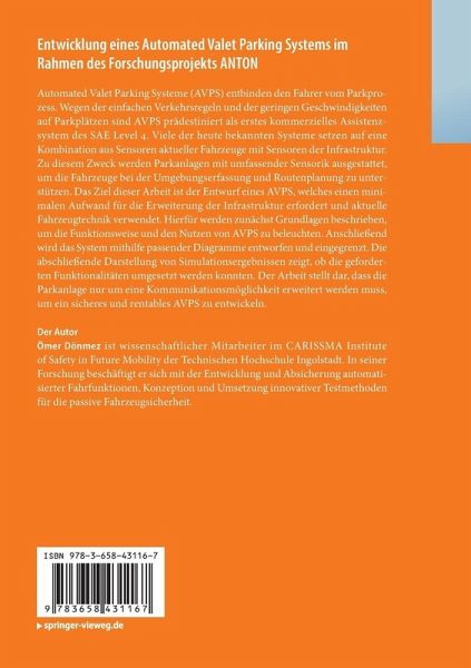 Automated Valet Parking Systeme (AVPS) entbinden den Fahrer vom Parkprozess. Wegen der einfachen Verkehrsregeln und der geringen Geschwindigkeiten auf Parkplätzen sind AVPS prädestiniert als erstes kommerzielles Assistenzsystem des SAE Level 4. Viele der heute bekannten Systeme setzen auf eine Kombination aus Sensoren aktueller Fahrzeuge mit Sensoren der Infrastruktur. Zu diesem Zweck werden Parkanlagen mit umfassender Sensorik ausgestattet, um die Fahrzeuge bei der Umgebungserfassung und Routenplanung zu unterstützen. Das Ziel dieser Arbeit ist der Entwurf eines AVPS, welches einen minimalen Aufwand für die Erweiterung der Infrastruktur erfordert und aktuelle Fahrzeugtechnik verwendet. Hierfür werden zunächst Grundlagen beschrieben, um die Funktionsweise und den Nutzen von AVPS zu beleuchten. Anschließend wird das System mithilfe passender Diagramme entworfen und eingegrenzt. Die abschließende Darstellung von Simulationsergebnissen zeigt, ob die geforderten Funktionalitäten umgesetztwerden konnten. Der Arbeit stellt dar, dass die Parkanlage nur um eine Kommunikationsmöglichkeit erweitert werden muss, um ein sicheres und rentables AVPS zu entwickeln.
