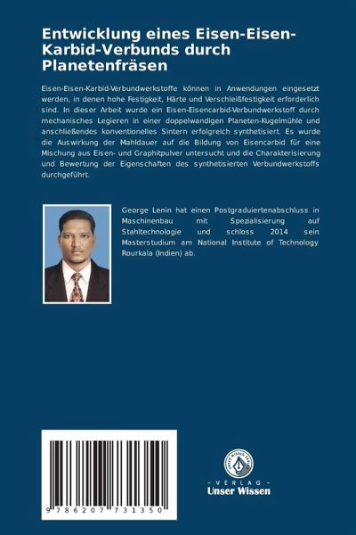 Eisen-Eisen-Karbid-Verbundwerkstoffe können in Anwendungen eingesetzt werden, in denen hohe Festigkeit, Härte und Verschleißfestigkeit erforderlich sind. In dieser Arbeit wurde ein Eisen-Eisencarbid-Verbundwerkstoff durch mechanisches Legieren in einer doppelwandigen Planeten-Kugelmühle und anschließendes konventionelles Sintern erfolgreich synthetisiert. Es wurde die Auswirkung der Mahldauer auf die Bildung von Eisencarbid für eine Mischung aus Eisen- und Graphitpulver untersucht und die Charakterisierung und Bewertung der Eigenschaften des synthetisierten Verbundwerkstoffs durchgeführt.
