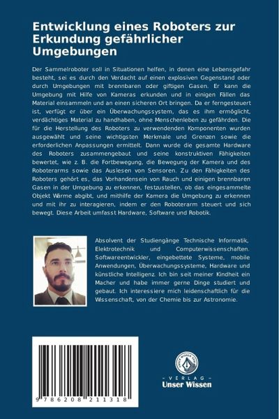 Der Sammelroboter soll in Situationen helfen, in denen eine Lebensgefahr besteht, sei es durch den Verdacht auf einen explosiven Gegenstand oder durch Umgebungen mit brennbaren oder giftigen Gasen. Er kann die Umgebung mit Hilfe von Kameras erkunden und in einigen Fällen das Material einsammeln und an einen sicheren Ort bringen. Da er ferngesteuert ist, verfügt er über ein Überwachungssystem, das es ihm ermöglicht, verdächtiges Material zu handhaben, ohne Menschenleben zu gefährden. Die für die Herstellung des Roboters zu verwendenden Komponenten wurden ausgewählt und seine wichtigsten Merkmale und Grenzen sowie die erforderlichen Anpassungen ermittelt. Dann wurde die gesamte Hardware des Roboters zusammengebaut und seine konstruktiven Fähigkeiten bewertet, wie z. B. die Fortbewegung, die Bewegung der Kamera und des Roboterarms sowie das Auslesen von Sensoren. Zu den Fähigkeiten des Roboters gehört es, das Vorhandensein von Rauch und einigen brennbaren Gasen in der Umgebung zu erkennen, festzustellen, ob das eingesammelte Objekt Wärme abgibt, und mithilfe der Kamera die Umgebung zu erkennen und mit ihr zu interagieren, indem er den Roboterarm steuert und sich bewegt. Diese Arbeit umfasst Hardware, Software und Robotik.