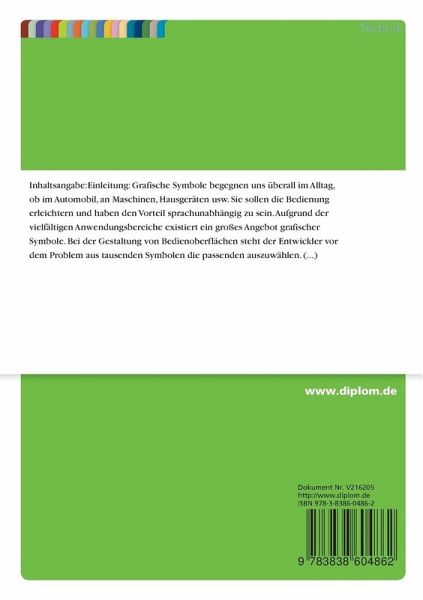 Grafische Symbole begegnen uns überall im Alltag, ob im Automobil, an Maschinen, Hausgeräten usw. Sie sollen die Bedienung erleichtern und haben den Vorteil sprachunabhängig zu sein. Aufgrund der vielfältigen Anwendungsbereiche existiert ein großes Angebot grafischer Symbole. Bei der Gestaltung von Bedienoberflächen steht der Entwickler vor dem Problem aus tausenden Symbolen die passenden auszuwählen. Momentan wird nur vom Deutschen Institut für Normung (DIN) ein Katalog, der DIN Fachbericht 4, angeboten, der völlig unstrukturiert die Abbildungen von ca. 4000 Symbolen enthält.
