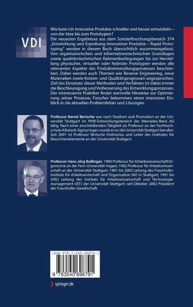Managementbuch.de - Empfehlung: Wie kann ich innovative Produkte schneller und besser entwickeln - von der Idee bis zum Prototypen? Die renommierten Experten Hans-Jörg Bullinger und Bernd Bertsche bieten hier den Überblick zu den neuesten Ergebnisse der "Entwicklung und Erprobung innovativer Produkte - Rapid Prototyping". Sie beschreiben alle relevanten Aspekte des Produktentwicklungsprozesses: von den organisatorischen und informationstechnischen Grundlagen und qualitätstechnischen Rahmenbedingungen bis hin zur Herstellung physischer, virtueller oder hybrider Prototypen. Dabei sprechen sie auch Themen wie Reverse Engineering, neue Materialien sowie Kosten- und Qualitätsprognosen an. Ziel des Einsatzes dieser Methoden und Verfahren ist dabei immer die Beschleunigung und Verbesserung des Entwicklungsprozesses.