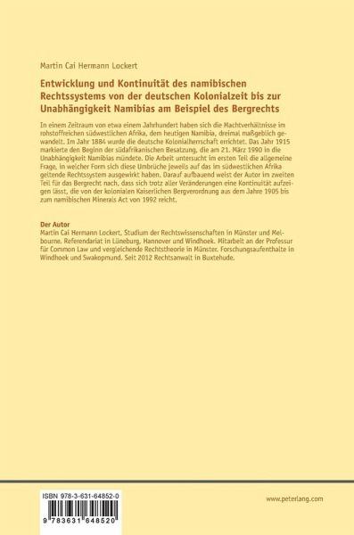 In einem Zeitraum von etwa einem Jahrhundert haben sich die Machtverhältnisse im rohstoffreichen südwestlichen Afrika, dem heutigen Namibia, dreimal maßgeblich gewandelt. Im Jahr 1884 wurde die deutsche Kolonialherrschaft errichtet. Das Jahr 1915 markierte den Beginn der südafrikanischen Besatzung, die am 21. März 1990 in die Unabhängigkeit Namibias mündete. Die Arbeit untersucht im ersten Teil die allgemeine Frage, in welcher Form sich diese Umbrüche jeweils auf das im südwestlichen Afrika geltende Rechtssystem ausgewirkt haben. Darauf aufbauend weist der Autor im zweiten Teil für das Bergrecht nach, dass sich trotz aller Veränderungen eine Kontinuität aufzeigen lässt, die von der kolonialen Kaiserlichen Bergverordnung aus dem Jahre 1905 bis zum namibischen Minerals Act von 1992 reicht.
