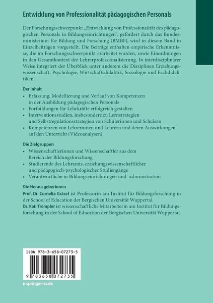 Der Forschungsschwerpunkt "Entwicklung von Professionalität des pädagogischen Personals in Bildungseinrichtungen", gefördert durch das Bundesministerium für Bildung und Forschung (BMBF), wird in diesem Band in Einzelbeiträgen vorgestellt. Die Beiträge enthalten empirische Erkenntnisse, die im Forschungsschwerpunkt erarbeitet wurden, sowie Einordnungen in den Gesamtkontext der Lehrerprofessionalisierung. In interdisziplinärer Weise integriert der Überblick Erziehungswissenschaft, Psychologie, Wirtschaftsdidaktik, Soziologie und Fachdidaktiken.