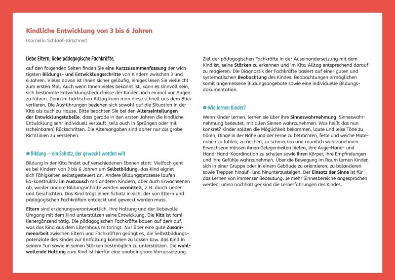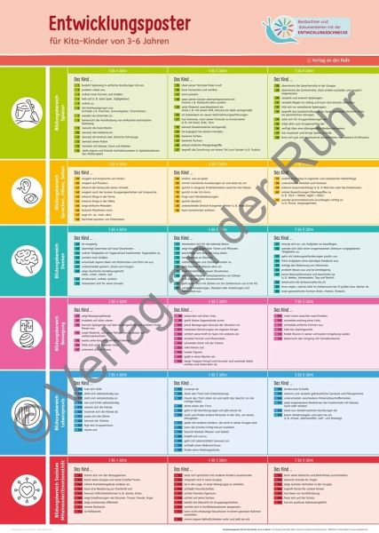 Für Erzieher und Erzieherinnen in Kita, Kindergarten und Tagespflege, für Kinder von 3-6 Jahren +++Das Entwicklungsposter-Set für Kinder von 3-6 Jahren ist die ideale Ergänzung zur Entwicklungsschnecke. Es enthält ein großformatiges Poster und zwei praktische Kompaktübersichten.Die Kriterien aus den Bildungsbereichen Spielen, Sprechen/Hören/Sehen, Denken, Bewegung, Lebenspraxis und soziales Miteinander/Emotionalität entsprechen denen der Entwicklungsschnecke. Die Alterseinteilung nach Jahren erlaubt eine präzise Einordnung der Fähigkeiten und Verhaltensweisen.Das Poster eignet sich hervorragend zum Aushang, während die Kompaktübersichten in Ziehharmonikafaltung besonders praktisch für die direkte Beobachtung und Elterngespräche sind.Das Entwicklungsposter-Set bietet folgende Vorteile:Fähigkeiten der Kinder einordnen und individuelle Unterschiede berücksichtigenEntwicklungsposter im Großformat mit Alterseinteilung von 3-6 Jahrenzwei Kompaktübersichten für Beobachtung und Elterngesprächeperfekt für Beobachtungsdokumentation, Elternkommunikation und als Aushang geeignetbasierend auf den Bildungsbereichen der Entwicklungsschnecke, auch unabhängig davon nutzbarDieses Poster-Set unterstützt die pädagogische Beobachtung und erleichtert die Kommunikation mit den Eltern.