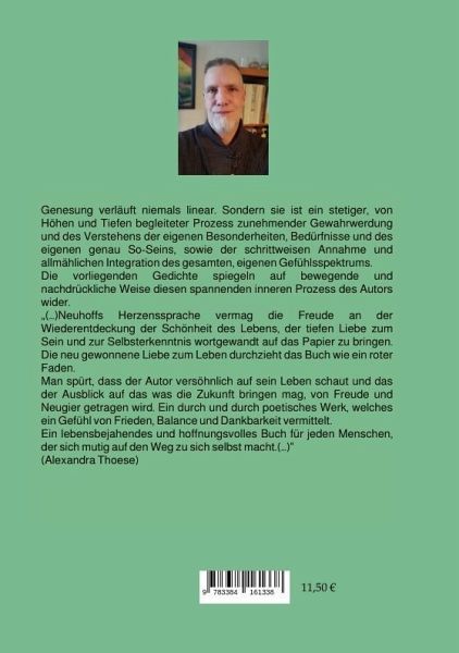 Die im Buch versammelten Gedichte handeln von der Wiederentdeckung der eigenen Gefühlswelt, ihrer Tiefe und ihren Facetten, nach einer Jahrzehnte andauernden seelischen Krisenzeit. Auch geht es darum, Gefühlen wieder Ausdruck zu verleihen, mit ihnen umzugehen, und sie überhaupt benennen und beschreiben zu können. Bedeutsam dabei ist jedoch auch das Finden eines Ausgleichs und Regulativs durch eine zunehmend intensive Meditationspraxis.