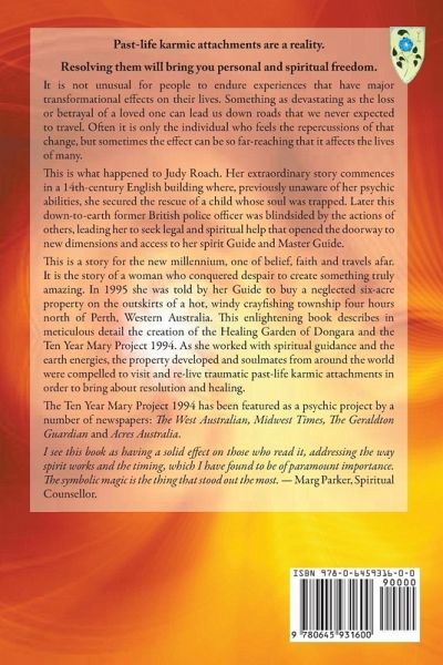 Past-life karmic attachments are a reality. Resolving them will bring you personal and spiritual freedom. It is not unusual for people to endure experiences that have major transformational eects on their lives. Something as devastating as the loss or betrayal of a loved one can lead us down roads that we never expected to travel. Oen it is only the individual who feels the repercussions of that change, but sometimes the eect can be so far-reaching that it aects the lives of many. is is what happened to Judy Roach. Her extraordinary story commences in a 14th-century English building where, previously unaware of her psychic abilities, she secured the rescue of a child whose soul was trapped. Later this down-to-earth former British police ocer was blindsided by the actions of others, leading her to seek legal and spiritual help that opened the doorway to new dimensions and access to her spirit Guide and Master Guide. is is a story for the new millennium, one of belief, faith and travels afar. It is the story of a woman who conquered despair to create something truly amazing. In 1995 she was told by her Guide to buy a neglected six-acre property on the outskirts of a hot, windy crayshing township four hours north of Perth, Western Australia. is enlightening book describes in meticulous detail the creation of the Healing Garden of Dongara and the Ten Year Mary Project 1994. As she worked with spiritual guidance and the earth energies, the property developed and soulmates from around the world were compelled to visit and re-live traumatic past-life karmic attachments in order to bring about resolution and healing.