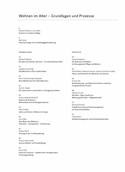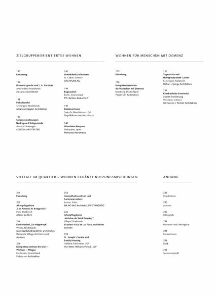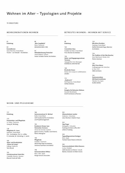 In der aktualisierte Neuauflage kommt ein neuer Fachbeitrag über die Bedarfsplanung hinzu, und im typologisch geordneten Beispielteil wird das Kapitel über integrative und quartiernahe Bauprojekte um sechs aktuelle internationale Beispiele erweitert.