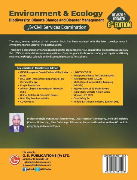 GK Publication launches the 6th edition of Ecology and Environment by Mr. Majid Hussain. This book has been thoroughly updated with all the recent developments in the field of Ecology and Environment. With each passing day, the topic of Environment and Ecology is gaining importance due to global climatic changes, carbon emissions, deforestation, Arctic and Antarctic melting, heat waves, erratic monsoons, etc. Hence aspirants of UPSC and State Public Service Commission examinations must have an in-depth understanding of the issues involved. This new edition includes new Wetland rules, an updated list of Biosphere Reserves & Wildlife Sanctuaries, and the latest IPCC report, which will be very helpful for UPSC aspirants. Salient Features: Updated with all recent Ecological and Environmental developments. As per the latest UPSC-Civil Services guidelines and exam pattern. Lucid and simplified study material.