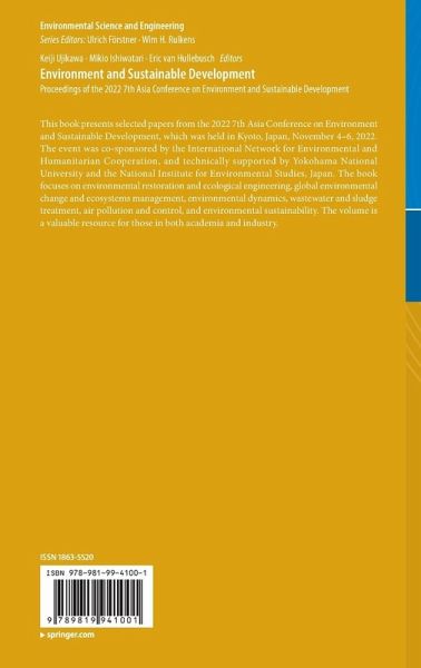 This book presents selected papers from the 2022 7th Asia Conference on Environment and Sustainable Development, which was held in Kyoto, Japan, November 4-6, 2022. The event was co-sponsored by the International Network for Environmental and Humanitarian Cooperation, and technically supported by Yokohama National University and the National Institute for Environmental Studies, Japan. The book focuses on environmental restoration and ecological engineering, global environmental change and ecosystems management, environmental dynamics, wastewater and sludge treatment, air pollution and control, and environmental sustainability. The volume is a valuable resource for those in both academia and industry.