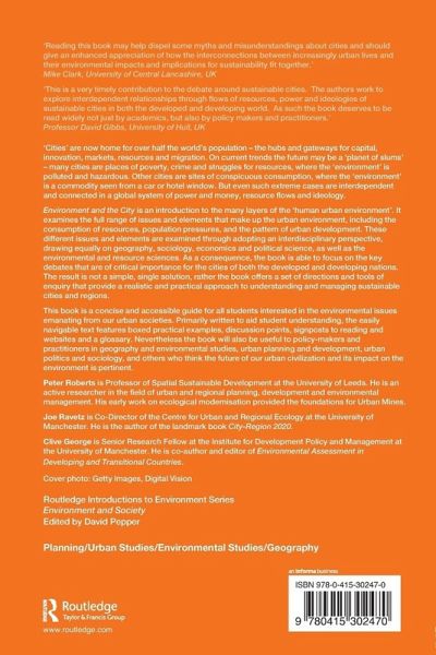 For the first time at the beginning of the twenty-first century, urban dwellers outnumber rural residents and this trend is set to continue. Consequently one of the most pressing issues of our time is how to square the social and economic development of cities with their environmental limits and those of the wider environment. The theme of the environment and city is topical at every level, from the politics of global trade to local community networks. Environment and the City looks at the evolution of cities in the developed and the developing world and the implications for resource consumption and environmental impacts. It takes a cross-cutting approach with new thinking on multiple geographies - the configuration of networks, exclusion, consumption, risk and ecological footprint. Urban environmental themes and their related social, economic and political agendas are outlined. In turn the environmental impacts and environmental agendas relating to key sectors of the urban economy are discussed. The global context to such issues is then explored before the practical tools and methods of urban environmental management are investigated. The theme of the sustainable city emerges from this - not so much as a standard menu, but as a learning process between all sections of society. This book, a valuable resource, provides a concise, accessible route map for all students interested in the environmental issues emanating from our urban society. Written to aid student understanding, the easily navigable text features boxed practical examples, discussion points, signposts to reading and websites, and a glossary.