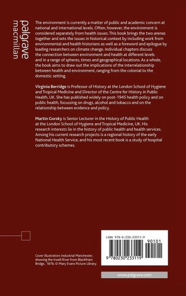 List of Illustrations, Figures and Tables Notes on Contributors Preface; A.Haines Acknowledgements Abbreviations Introduction: Environment, Health and History; V.Berridge & M.Gorsky Housing and Health in Early Modern London; V.Harding Environment and Disease in Ireland; C.Hamlin The Handbuch der Hygiene - A Manual of Proto-Environmental Science in Germany of 1900?; D.Schott Leagues of Sunshine: Sunlight, Health and the Environment; S.Carter Healthy Places and Healthy Regimens: British Spas 1918-1950; J.Adams Rethinking the Post War Hegemony of DDT: Insecticides Research and the British Colonial Empire; S.Clarke Health Crusades': Environmental Approaches as Public Health Strategies against Infections in Sanitary Propaganda Films, 1930 - 1960; C.Bonah Cross-Nationalizing the History of Industrial Hazard; C.C.Sellers The Gardener in the Machine: Biotechnological Adaptation for Life Indoors; C.Warren Exposing the Cold War Legacy: The Activist Work of Physicians for Social Responsibility and International Physicians for the Prevention of Nuclear War, 1986 and 1992; L.Rumiel The Impacts on Human Health and Environment of Global Climate Change: A Review of International Politics; I.Palmlund Epilogue; P.Wilkinson