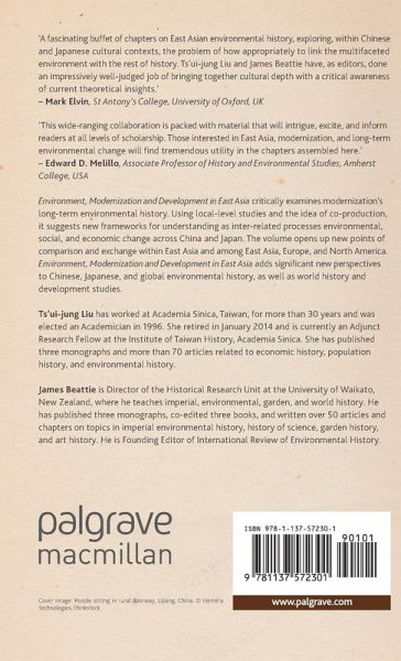 A fascinating buffet of chapters on East Asian environmental history, exploring, within Chinese and Japanese cultural contexts, the problem of how appropriately to link the multifaceted environment with the rest of history. Ts`ui-jung Liu and James Beattie have, as editors, done an impressively well-judged job of bringing together cultural depth with a critical awareness of current theoretical insights.' - Mark Elvin, St Antony's College, University of Oxford, UK