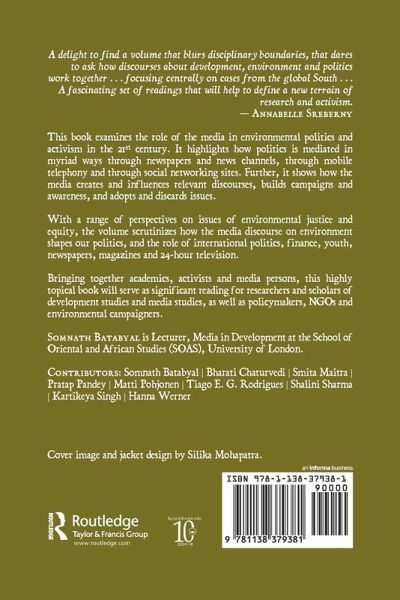 This book examines the role of the media in environmental politics and activism in the 21st century. It highlights how politics is mediated in myriad ways through newspapers and news channels, through mobile telephony and through social networking sites. Further, it shows how the media creates and influences relevant discourses, builds campaigns and awareness, and adopts and discards issues. With a range of perspectives on issues of environmental justice and equity, the volume scrutinizes how the media discourse on environment shapes our politics, and the role of international politics, finance, youth, newspapers, magazines and 24-hour television. Bringing together academics, activists and media persons, this highly topical book will serve as significant reading for researchers and scholars of development studies and media studies, as well as policymakers, NGOs and environmental campaigners.