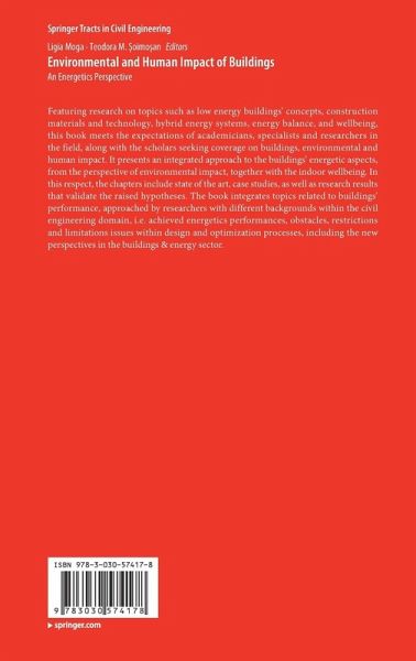 Featuring research on topics such as low energy buildings' concepts, construction materials and technology, hybrid energy systems, energy balance, and wellbeing, this book meets the expectations of academicians, specialists and researchers in the field, along with the scholars seeking coverage on buildings, environmental and human impact. It presents an integrated approach to the buildings' energetic aspects, from the perspective of environmental impact, together with the indoor wellbeing. In this respect, the chapters include state of the art, case studies, as well as research results that validate the raised hypotheses. The book integrates topics related to buildings' performance, approached by researchers with different backgrounds within the civil engineering domain, i.e. achieved energetics performances, obstacles, restrictions and limitations issues within design and optimization processes, including the new perspectives in the buildings & energy sector.