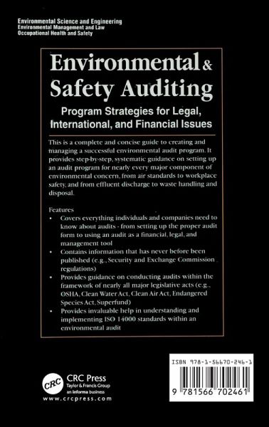 This is a complete and concise guide to creating and managing a successful environmental audit program. It provides step-by-step guidance on setting up an audit program for nearly every major component of environmental concern, from air standards to workplace safety, and from effluent discharge to waste handling and disposal.