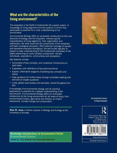 Environmental Biology offers an accessible introduction to the core elements of biology and the biosphere. With balanced coverage of acquatic and terrestrial examples throughout, the text builds logically to present a clear understanding of the fundamental processes of life before examining its more complex components, namely individuals, populations, communities and ecosystems. A knowledge of environmental biology and its practical applications is essential for a deeper understanding of the environment. Environmental Biology offers an invaluable introduction to the living environment for all areas of study, from environmental history, agriculture and forestry, to impact assessment, climate change, ecology and conservation.