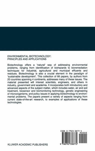 Biotechnology offers a `natural' way of addressing environmental problems, ranging from identification of biohazards to bioremediation techniques for industrial, agricultural and municipal effluents and residues. Biotechnology is also a crucial element in the paradigm of `sustainable development'. This collection of 66 papers, by authors from 20 countries spanning 4 continents, addresses many of these issues. The material presented will interest scientists, engineers, and others in industry, government and academia. It incorporates both introductory and advanced aspects of the subject matter, which includes water, air and soil treatment, biosensor and biomonitoring technology, genetic engineering of microorganisms, and policy issues in applying biotechnology to environmental problems. The papers present a variety of aspects ranging from current state-of-the-art research, to examples of applications of these technologies.