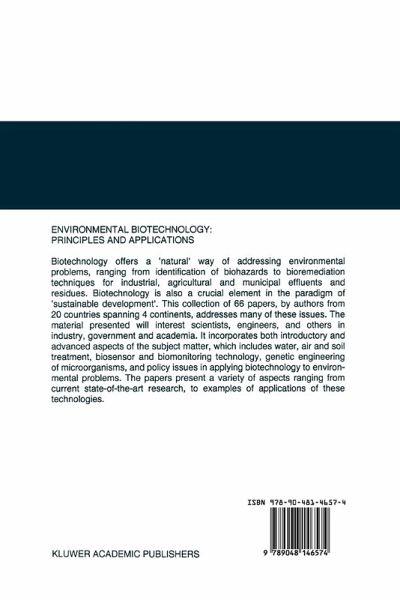 Biotechnology offers a `natural' way of addressing environmental problems, ranging from identification of biohazards to bioremediation techniques for industrial, agricultural and municipal effluents and residues. Biotechnology is also a crucial element in the paradigm of `sustainable development'. This collection of 66 papers, by authors from 20 countries spanning 4 continents, addresses many of these issues. The material presented will interest scientists, engineers, and others in industry, government and academia. It incorporates both introductory and advanced aspects of the subject matter, which includes water, air and soil treatment, biosensor and biomonitoring technology, genetic engineering of microorganisms, and policy issues in applying biotechnology to environmental problems. The papers present a variety of aspects ranging from current state-of-the-art research, to examples of applications of these technologies.