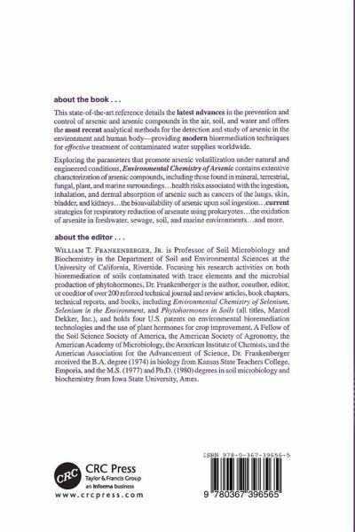 With contributions from world-renowned experts in the field, this book explores developments in the transport kinetics, seasonal cycling, accumulation, geochemistry, transformation, and toxicology of arsenic. It details advances in the prevention and control of arsenic and arsenic compounds in the air, soil, and water and offers analytical methods for the detection and study of arsenic in the environment and human body. Providing bioremediation techniques for effective treatment of contaminated water supplies, the book discusses factors that influence the removal of arsenic from water as well as diurnal and seasonal variations in the arsenic concentration of surface water supplies.
