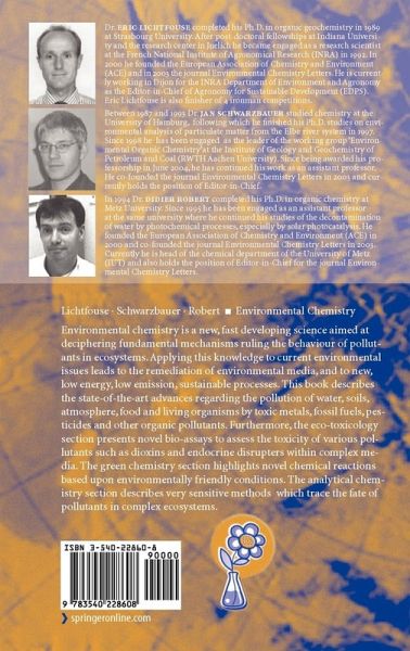 "Environmental Chemistry is a fast-developing discipline aiming at understanding the fate of pollutants in ecosystems and at designing novel processes that are safe for ecosystems. This book is a collection of 69 papers arranged into seven topics ... . it will be of interest to scientists who are working in specific domains dealt with." (International Journal of Environmental Analytical Chemistry, Vol. 85 (15), 2005)