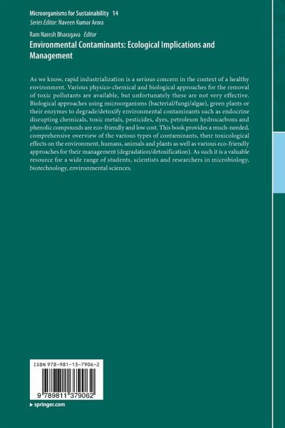 As we know, rapid industrialization is a serious concern in the context of a healthy environment. Various physico-chemical and biological approaches for the removal of toxic pollutants are available, but unfortunately these are not very effective. Biological approaches using microorganisms (bacterial/fungi/algae), green plants or their enzymes to degrade/detoxify environmental contaminants such as endocrine disrupting chemicals, toxic metals, pesticides, dyes, petroleum hydrocarbons and phenolic compounds are eco-friendly and low cost. This book provides a much-needed, comprehensive overview of the various types of contaminants, their toxicological effects on the environment, humans, animals and plants as well as various eco-friendly approaches for their management (degradation/detoxification). As such it is a valuable resource for a wide range of students, scientists and researchers in microbiology, biotechnology, environmental sciences.