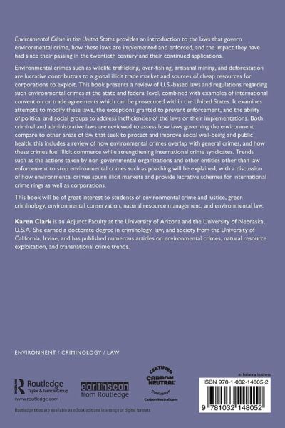 Environmental crimes such as wildlife trafficking, over fishing, artisanal mining, and deforestation are lucrative contributors to a global illicit trade market and sources of cheap resources for corporations to exploit. This book presents a review of U.S. based laws and regulations regarding such environmental crimes at the state and federal level, combined with examples of international convention or trade agreements which can be prosecuted within the United States. It examines attempts to modify these laws, the exceptions granted to prevent enforcement, and the ability of political and social groups to address inefficiencies of the laws or their implementations. Both criminal and administrative lawsare reviewed to assess how laws governing the environment compare to other areas of law that seek to protect and improve social well being and public health; this includes a review of how environmental crimes overlap with general crimes, and how these crimes fuel illicit commerce while strengthening international crime syndicates. Trends such as the actions taken by non governmental organizations and other entities other than law enforcement to stop environmental crimes such as poaching will be explained, with a discussion of how environmental crimes spurn illicit markets and provide lucrative schemes for international crime rings as well as corporations.