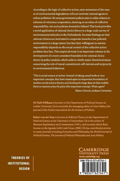This book examines environmental policy-making through research into individuals' reaction to environmental issues. It is often assumed that people are reluctant to contribute to environmental protection, because they do not see it as in their interests. The authors argue that self-interest is just one of a number of motives which affect people's choices, and that voluntary environmental polices are thus more likely to succeed than might be expected. They base their arguments on detailed surveys of public opinion.
