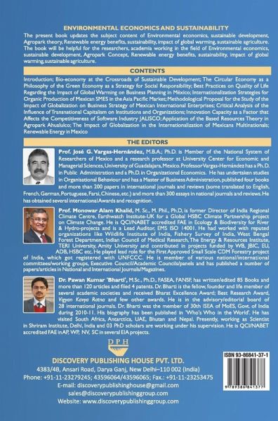 The present book updates the subject content of Environmental economics, sustainable development, Agropark theory, Renewable energy benefits, sustainability, impact of global warming, sustainable agriculture.
