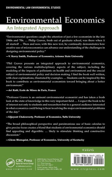 Rigorous, yet written in a way that facilitates understanding of complex material, Environmental Economics: An Integrated Approach provides practical and working knowledge of how environmental policy analysis is developed. This is a true textbook, detailing the tools required to conduct that analysis and also discusses weaknesses in the existing methods, underlining areas for future improvement. This approach allows readers to get a sense of what is known and what is not known about environmental economics. The book discusses why we have environmental problems and how we would optimally react if we had perfect information about environmental benefits and costs. It then describes methods in use-and their flaws-to acquire the information necessary to enact environmental policy. The book starts with a categorization of goods types, concluding that environmental problems stem from non-excludable goods that are either rivalrous or non-rivalrous. The author introduces the Coase Theorem in the first chapter, then details how households and firms would behave when facing a zero price on pollution versus a price on pollution set equal to presumed known marginal damages. He connects the economic system with the environmental system by aggregating up from individual decisions to the aggregate market system and the aggregate environmental quality. But, of course, the information available is rarely perfect. Clarifying the information difficulties faced by households, firms, and policy makers, the author recognizes that there is both a knowledge gap and a communication gap. He then covers the methods policy makers employ in an attempt to gain sufficient insight into marginal benefits and marginal costs to properly set a marginal damage tax, properly limit emission rights, or properly provide public goods. The book then examines the nature of these methods and their likely bias, before concluding that surviving the next 50 to 100 years will lead to a w