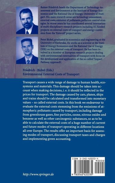 Transport is very important for the economy and our welfare. However, transport also causes a lot of problems, including air pollution. Such problems should be taken into account, when making decisions. A prerequisite for doing so is, that the impacts are known, quantitatively measured and allocated to the different activities in transport. Furthermore, they should be transformed into monetary units to be used as a basis for cost-benefit analyses or as an aid for setting taxes and charges, that reflect the external costs. This book describes a methodology for calculating impacts of transport activities and external costs caused by air pollution and presents numerous applications of this methodology for different transport technologies, locations and policy case studies. The approach has been developed and results have been calculated within the research project 'ExternE Core/Transport', financed to a large extent by the European Commission, Directorate General Research. We would like to thank especially Pierre Vallette and Pekka Jarviletho from the EC for their advice and support. A considerable number of experts with expertise in the different disciplines of this highly interdisciplinary work contributed to this book. The editors would like to thank the authors (see list on p. XV) for their contributions; it is especially remarkable, that the authors helped to make this book an integrated whole instead of a number of independent contributions.