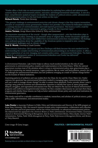 "Environmental Federalism: Old Legacies and New Challenges will likely become the next standard text for understanding the complex interworking of environmental policymaking in our federal system. It offers a cogent exploration of an ever changing and complex policy arena - environmental federalism. The field is in need of a contemporary update of environmental federalism and Fowler has delivered!"