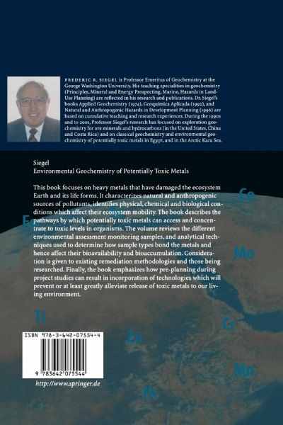 From the reviews: "Environmental Geochemistry of Potentially Toxic Metals by Frederic R. Siegel is a well-organized text, which provides a good overview of the pertinent issues in studying heavy metals in the environment. ... The figures and tables complement the text and wonderfully display such topics as uses of metals and the biogeochemical cycles of nutrients. ... this is a useful text for geochemistry/ecology students and interested laymen who want to learn about the origin, transport, and sequestering of toxic metals." (Philip L. Verplanck, Mineralium Deposita, Vol. 38 (2), 2003) "This book, containing 218 pages divided into nine chapters, gives, as the title indicates, an overview of the geochemistry of toxic metals. In the first section a clear definition is given of which metals are considered toxic, including an overview of effects on ecosystems. ... this book is an interesting document for all scientists working in the field of metals. ... There is much interesting information included, especially in the tables." (Jan Bronders, International Journal of Environment and Pollution, Vol. 19 (6), 2003) "This book contains a lot of fundamental and actual scientific knowledge on environmental geochemistry of potentially toxic metals and related fields. Facts are presented in clear chapters divided into short sections, written in a concise and clearly understandable style. ... The book is strongly recommended for students in many fields ... and all those who start to work in the field of potentially toxic metals or are interested in this research. It is therefore a valuable and timely addition to the literature." (W. Calmano, Acta hydrochimica et hydrobiologica, Vol. 21 (1), 2003) "This volume is a welcome addition to the field. ... It sets out to provide a comprehensive overview of fundamental geochemical principles and their relevance to potential impact of potentially toxic metals on ecosystem function. ... The text ... presents a concise and focused treatment of the issues. ... it is certainly the definitive overview of the environmental geochemistry of metal pollution. It is relevant to all practitioners, researchers and students of the subject ... . An accessible, enjoyable and informative volume - strongly recommended." (Professor Andrew S. Hursthouse, Journal of Environmental Monitoring - online, March, 2003)