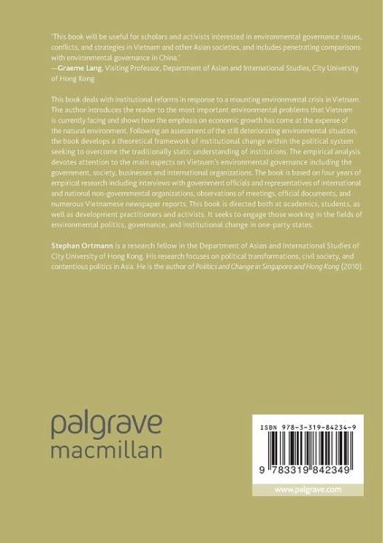 This book deals with institutional reforms in response to a mounting environmental crisis in Vietnam. The author introduces the reader to the most important environmental problems that Vietnam is currently facing and shows how the emphasis on economic growth has come at the expense of the natural environment. Following an assessment of the still deteriorating environmental situation, the book develops a theoretical framework of institutional change within the political system seeking to overcome the traditionally static understanding of institutions. The empirical analysis devotes attention to the main aspects on Vietnam's environmental governance including the government, society, businesses and international organizations. The book is based on four years of empirical research including interviews with government officials and representatives of international and national non-governmental organizations, observations of meetings, official documents, and numerous Vietnamese newspaper reports. This book is directed both at academics, students, as well as development practitioners and activists. It seeks to engage those working in the fields of environmental politics, governance, and institutional change in one-party states.