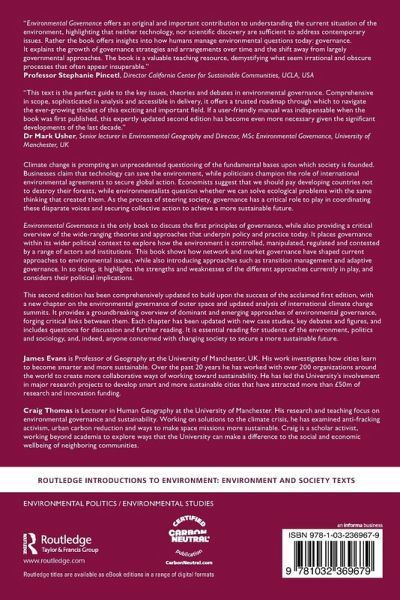 This book discusses the first principles of governance, and provides a critical overview of the theories and approaches that underpin policy and practice today. It shows how network and market governance shaped current approaches to environmental issues, and introduces approaches such as transition management and adaptive governance.