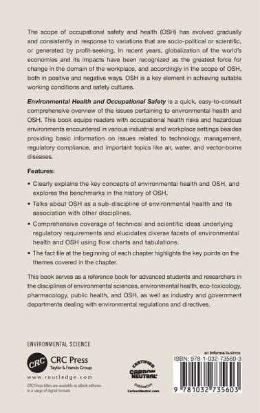 Chapter 1: Environmental Health Chapter 2: Occupational Safety and Health Chapter 3: Workplace Hazards: Biological Chapter 4: Workplace Hazards: Chemical Chapter 5: Workplace Hazards: Physical & Ergonomic Chapter 6: Occupational Diseases Chapter 7: Workplace Safety and Health Management Chapter 8: Waterborne Diseases Chapter 9: Vector Borne Diseases Chapter 10: Air Borne Diseases Chapter 11: Natural Disasters & Health