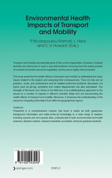 This book examines the health effects of transport and mobility by addressing the major issues related to the subject and analyzing their consequences. Thus not only are air pollution, noise, and sedentarism and its related endocrine problems discussed, but topics such as jet-lag, accidents and violent displacement are also addressed. The strength of this book over others in the field lies in its multidisciplinary approach to the issues by a number of experts in different scientific fields who are documenting the health effects of transport and mobility. Moreover, it enhances the understanding of the issues by integrating information from different geographical regions.