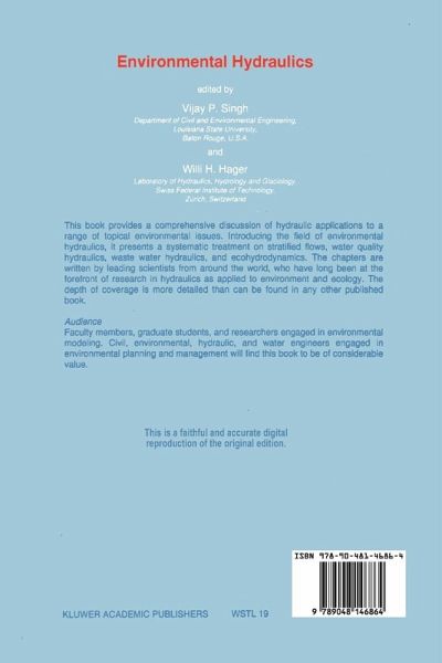 Triggerd primarily byill effects of polluted air, soil and water resources on living species, public concern for environmental quality has been growing during the past four decades or so. One manifestation of this concern is found in occurrence of public debates as well as in the demand for full environmental impact assessment before a water-resources project is approved. Engineering soundness and economic feasibility are no longer sufficient criteria for construction of hydraulic works. As a result, environmental considerations have become very much a part of hydraulic analyses. In response to growing environmental concerns, the field of hydraulics has expanded and a new branch, called Environmental Hydraulics, has emerged. The focus of this branch is on hydraulic analyses of those environmental issues that are important for protection, restoration, and managementof environmental quality. The motivation for this book grew out of the desire to provide a hydraulic discussion of some of the key environmental issues.It is hoped that the book would serve to stimulate others to write more comprehensive texts on this subject of growing importance.