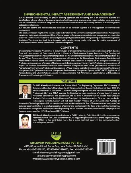 This book provides an insight of the exercise to be undertaken for the Environmental Impact Assessment and Management to make it a viable application oriented. Most of the parameters of environmental pollution and management are covered in this book. The book will be useful to advanced graduate/post graduate students of engineering and science/management disciplines. The aim of this book is to inculcate understanding among readers the need for making assessment of human/natural actions on our environment and their management.