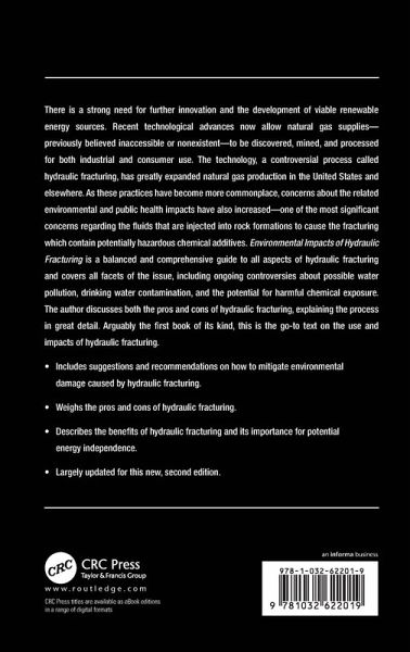 Environmental Impacts of Hydraulic Fracturing is a balanced and comprehensive guide to all aspects of hydraulic fracturing and covers all facets of the issue, including ongoing controversies about possible water pollution, drinking water contamination, and the potential for harmful chemical exposure.