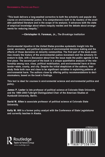 "Environmental Injustice in the United States provides systematic insight into the social, economic, and political dynamics of environmental decision-making, and the impacts of those decisions on mino"