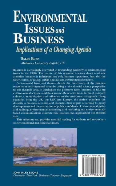 Business is increasingly interested in responding positively to environmental issues in the 1990s. The nature of this response deserves closer academic attention because it influences not only business operations, but also the wider context of policy, public opinion and environmental concern. Environmental Issues and Business details the dimensions of the business response to environmental issues by taking a critical social science perspective to this dynamic area. It catalogues the pressures upon business to take up environmental activities and then assesses those activities in terms of company culture, communication and influence on the environmental agenda. Using examples from the UK, the USA and Europe, the author examines the diversity of business activities and evaluates their impact according to policy developments and the restoration of public confidence. Environmental policy and auditing, environmental advertising and marketing and environmentally based communications illustrate how business has approached this difficult task. This milestone text provides essential reading for students and researchers of environmental and business studies.