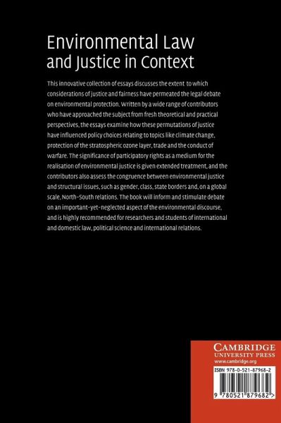 This collection of essays discusses the extent to which considerations of justice and fairness have permeated the legal debate on environmental protection. Written by a wide range of contributors who have approached the subject from fresh theoretical and practical perspectives, the essays examine how these permutations of justice have influenced policy choices relating to topics like climate change, protection of the stratospheric zone, trade and the conduct of warfare. The significance of participatory rights as a medium for the realisation of environmental justice is given extended treatment, and the contributors also assess the congruence between environmental justice and structural issues, such as gender, class, state borders and, on a global scale, North-South relations. The book will inform and stimulate debate on an important-yet-neglected aspect of the environmental discourse, and is highly recommended for researchers and students of international and domestic law, political science and international relations.
